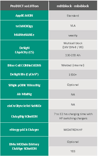 The MBS(PzB) series includes 54 cells types, covering a range of capacities from 110 to 1050 Ah/C5